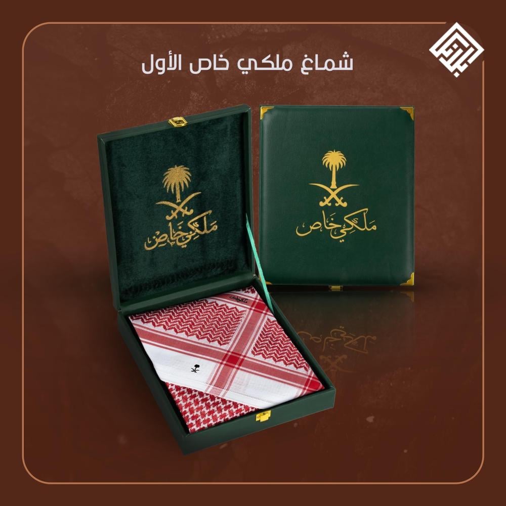 شماغ ملكي خاص الأول، فخامة ما بعدها فخامة. ناعم الملمس، ثابت اللون، ونقشته تلفت الأنظار من أول نظرة. صُمم بعناية للي يدور التميّز والأناقة بكل مناسبة.